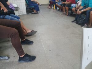 Os educadores sociais da RNP+ Ceará, Lúcia Mendonça e Éder Rebouças, realizaram uma roda de conversa no dia 20 de janeiro de 2026 com usuários do SAE Hospital São José, que aguardavam atendimento na sala de espera do serviço de saúde, transformando o tempo de espera em um espaço de escuta, acolhimento e troca de experiências.