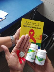 Durante a atividade, os educadores também explicaram, de forma acessível, a diferença entre HIV (vírus) e AIDS (condição que pode se desenvolver quando não há tratamento), explicando que, com acompanhamento adequado, é possível viver com saúde e qualidade de vida.