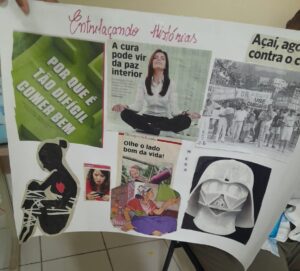 A atividade incluiu uma dinâmica com recortes e colagens a partir de revistas, permitindo que cada participante representasse simbolicamente sua vivência com o HIV/AIDS. Os cartazes produzidos traduziram sentimentos, desafios e conquistas, fortalecendo o senso de pertencimento e ampliando o diálogo para além das palavras.