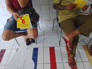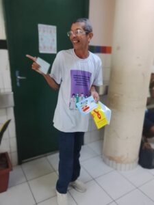 Foram recebidos pela auxiliar de assistente social Simone Costa e pela recepcionista Erika de Abreu, que os acolheram de forma atenta e sensível, permanecendo em escuta durante toda a atividade. O encontro ocorreu em um momento significativo da rotina do serviço, com usuários realizando exames de CD4 e outros que aguardavam atendimento em consultas previamente agendadas.