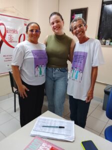 Ao final da atividade, registraram o momento com fotos do espaço e contaram também com o apoio das últimas profissionais do SAE presentes: a assistente social Suyane Lima e a técnica de enfermagem de coleta Silvana.