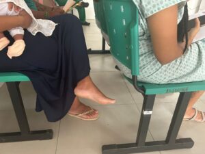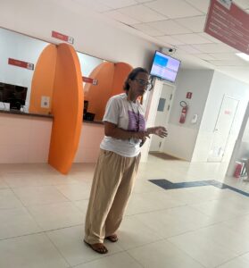 Um dos momentos mais significativos da atividade envolveu o diálogo com mães e pessoas grávidas presentes no serviço, quando se falou sobre a relevância do diagnóstico precoce do HIV e das ISTs durante a gestação. Muitas participantes relataram desconhecer que a testagem faz parte do cuidado pré-natal e que, com acompanhamento adequado e tratamento oportuno, é possível garantir que o bebê nasça sem estas infecções.