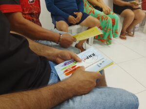Houve ainda um momento de descontração, com um pequeno sorteio, lembrando as campanhas do Outubro Rosa e Novembro Azul, reforçando o autocuidado e a prevenção de cânceres que afetam mulheres e homens. Também foram repassadas informações sobre o cadastro de cestas básicas, o apoio da RNP+ Ceará e a importância do projeto que vem fortalecendo o bem-estar e a autonomia dos usuários.