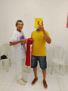 Os educadores também trouxeram orientações importantes sobre adesão, PEP, prevenção combinada e outras ISTs, lembrando que o Dezembro Vermelho é um mês de cuidado, atenção e solidariedade. Tudo foi colocado de forma leve, humana e próxima — como uma conversa entre pessoas que se reconhecem e se apoiam.